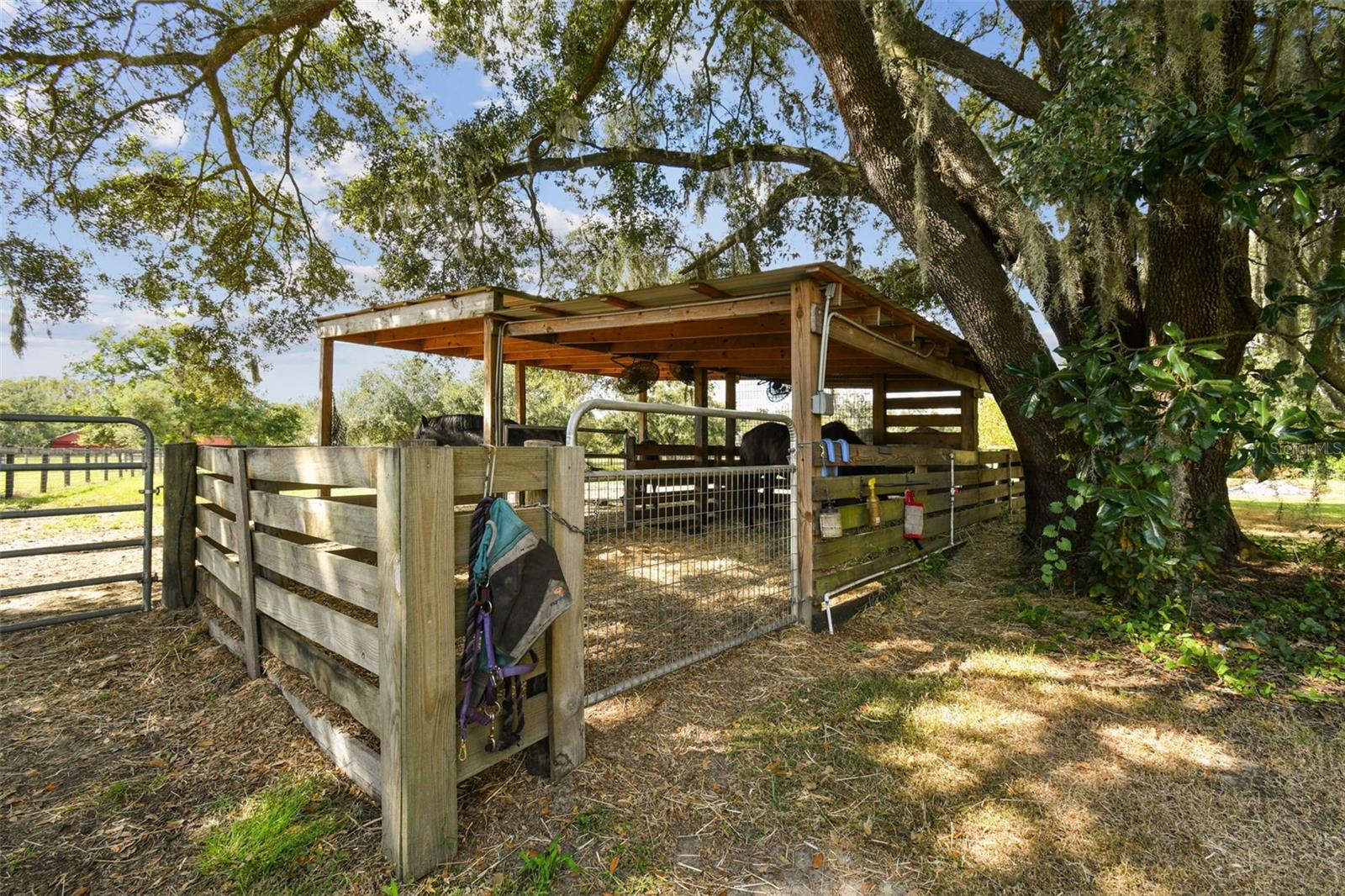 access to a large paddock with a 24x16 loafing shed, all equipped with fans, auto waterers, and cameras. The RV Area is oversized, with a covered RV port measuring 40x16 ft for the RV spot, two 50 AMP hookups, separate septic, and utility shed with washer/dryer hookup and water treatment/filtration system. Equestrian Amenities include a 20x40 meter dressage court and a 2-acre jump field with all jumps included in the sale. This property offers a unique opportunity to own a first-class equestrian estate in a prime location. Whether you're a seasoned equestrian or