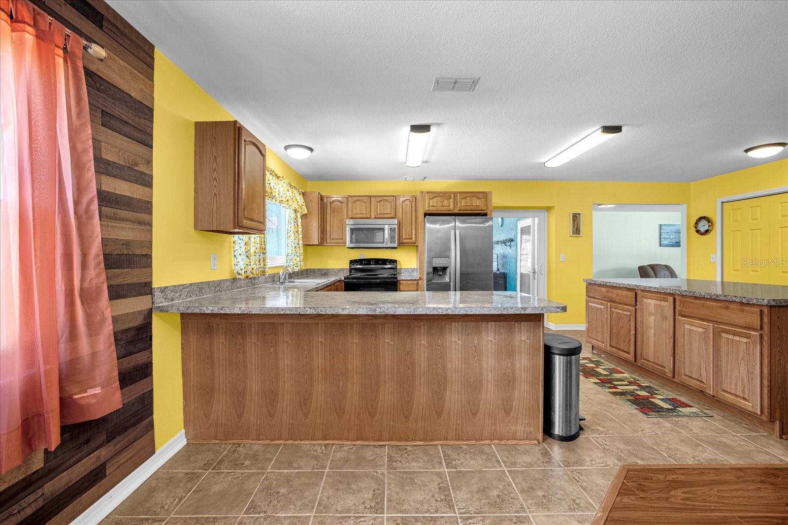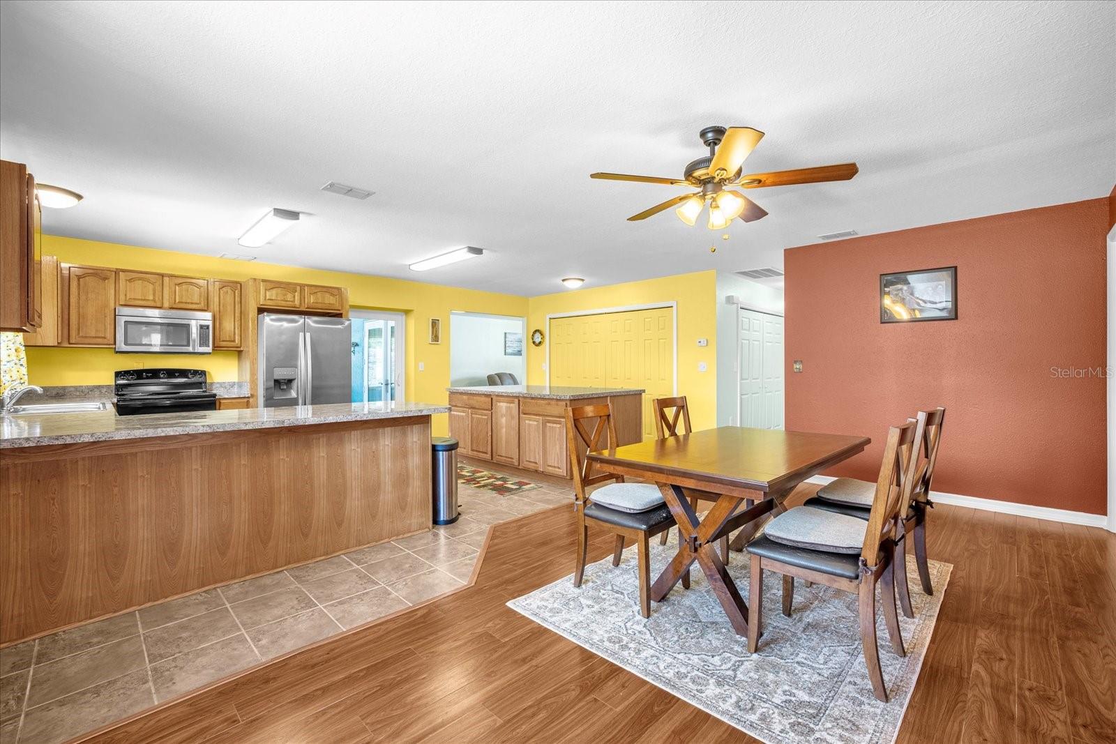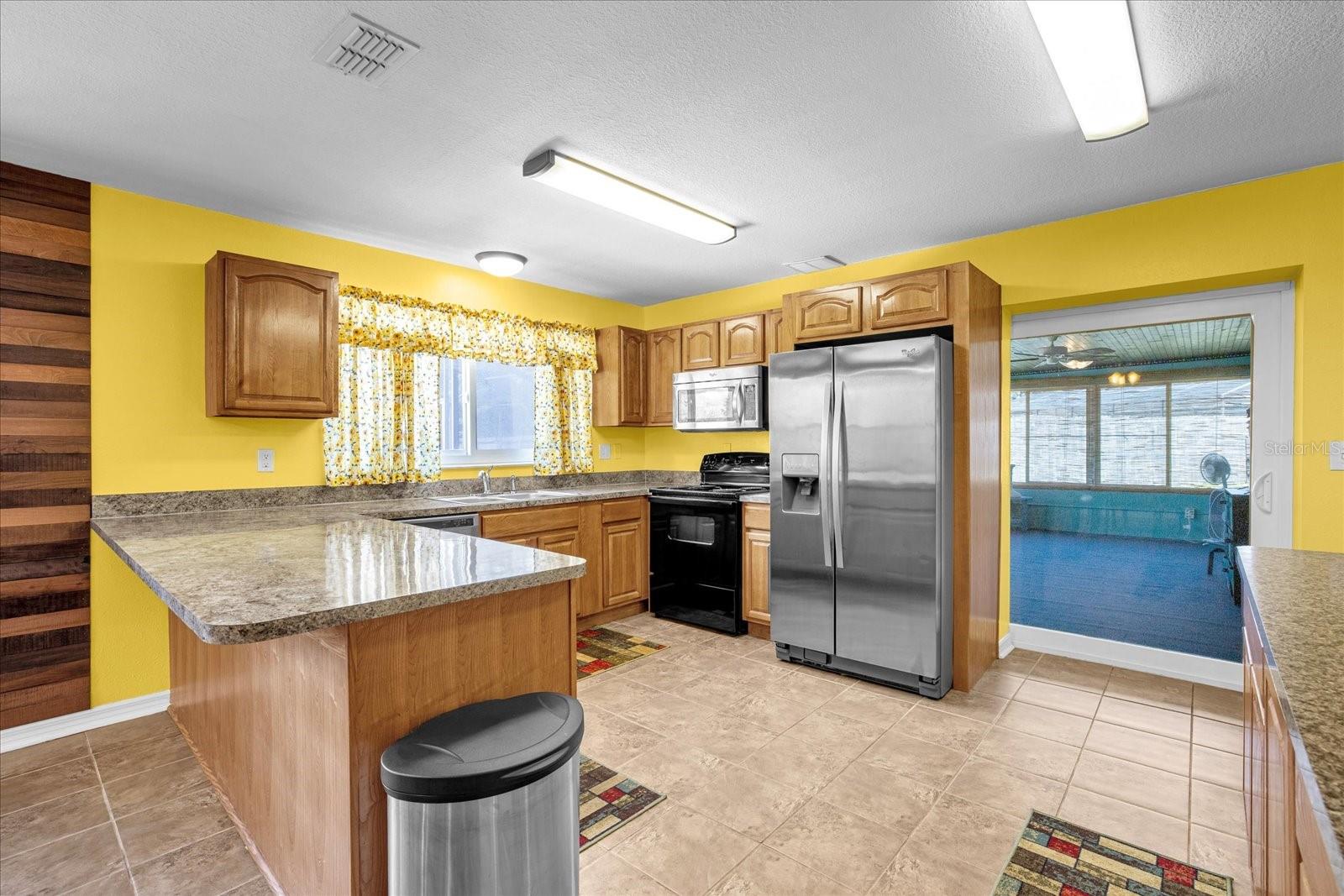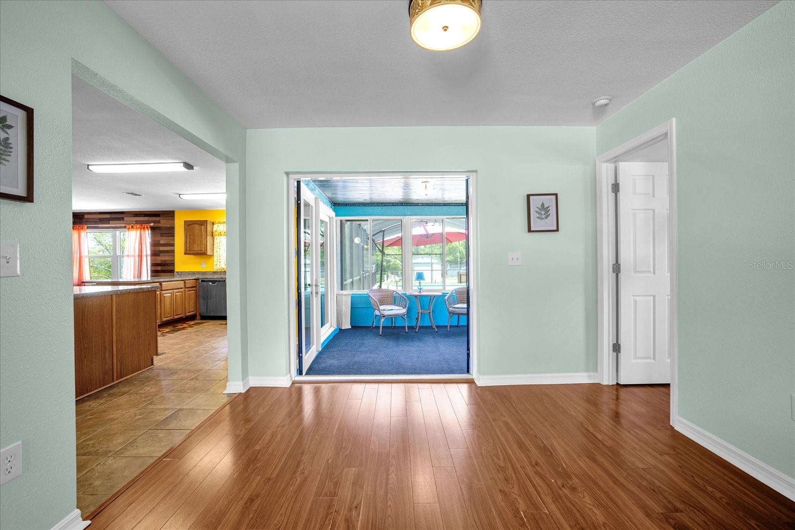 Did I mention the pool?? HUGE pool with lovely pavers surrounding this screened in beauty! A bench at the deep end for dipping your feet into the water after a long day. But the best part is the Florida room with its ADORABLE accents! The wood ceiling in this room makes you feel like you just stepped into Margaritaville! The custom ceiling fan, seashell decorations, even the outlet covers are cute with sea and beach decor! The Florida room is accessible from the kitchen through a super high quality vinyl sliding glass door or through the high end vinyl French doors that lead to the great room.