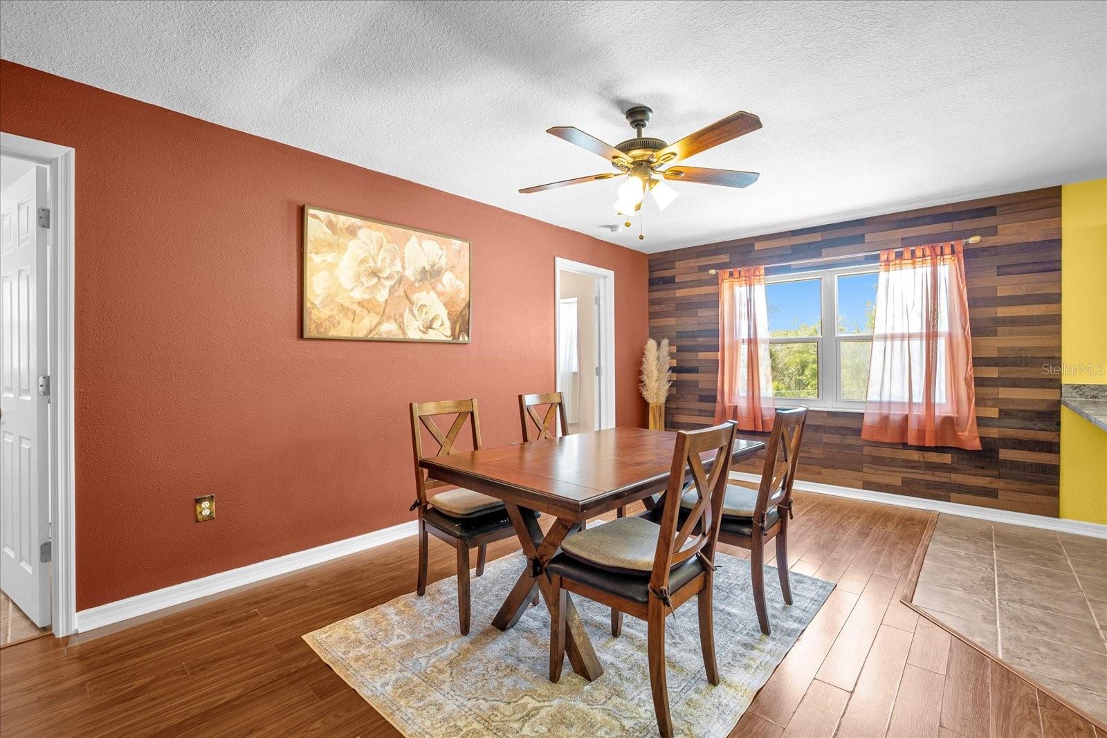 Shiplap dining room wall 2023. Bathroom remodeled 2023.