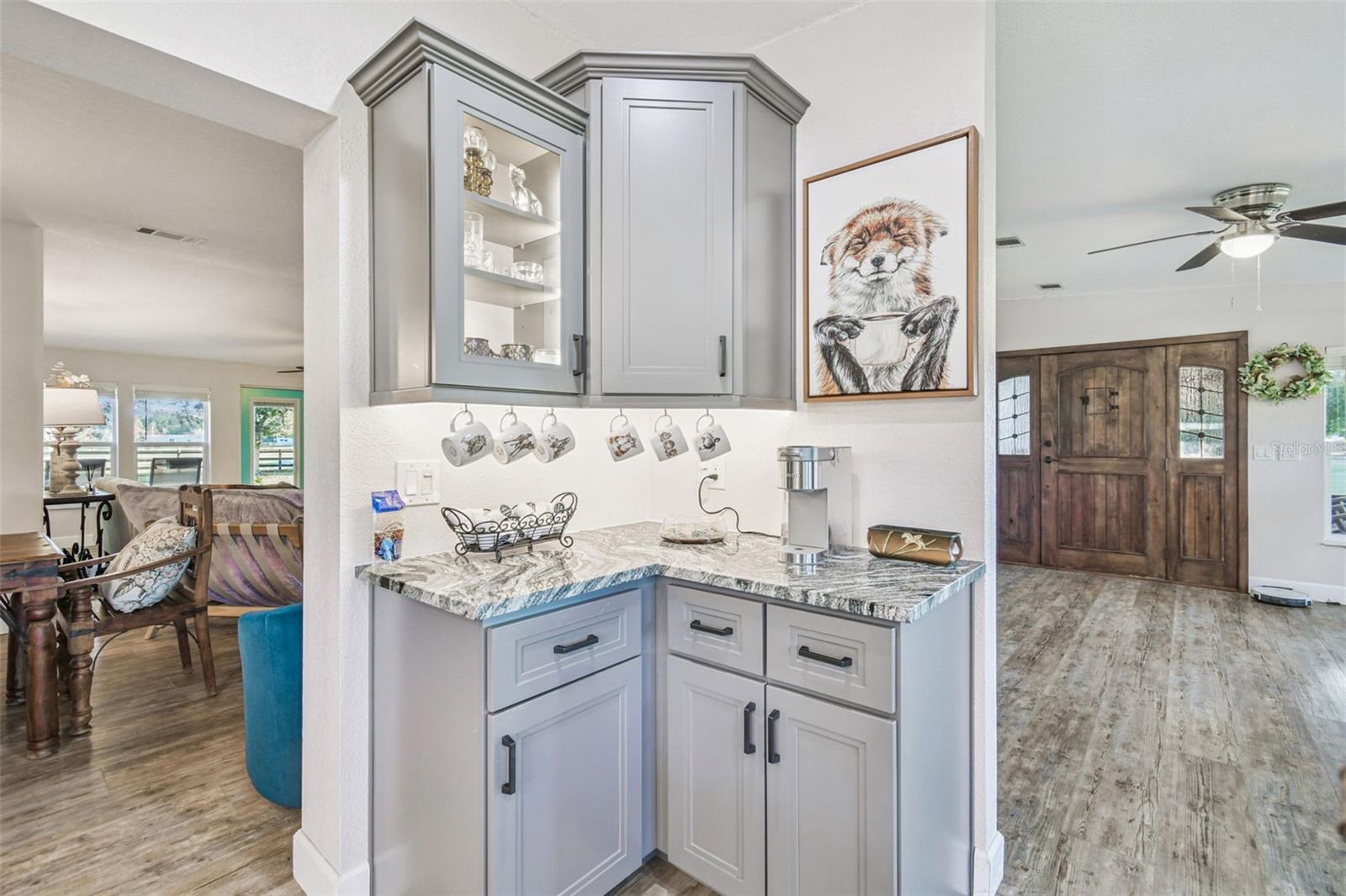 There are plenty of other places for riding and turnout. There is a galloping field, two large front pastures, and four smaller paddocks. Other farm amenities include an insulated storage container for feed and hay. A 30X50 garage with a double door and two single doors that can house automobiles and farm equipment or be used as a workshop. Included is a 120 gallon 5 hp air compressor. Inside the garage there is an enclosed air-conditioned area that can be used as an office. The barn bathroom is a stand alone building with a full bath along with a washer and dryer. Next to this building is a finished handy house with a kitchenette and a loft. The 3-bedroom 2 bath home has many updates and additions. Over the last two years the house has undergone $130k in renovations. (See the attached document). The primary bedroom has 2 walk-in closets, double sink, a new shower and a private toilet room. The kitchen has been recently renovated, and its design makes for easy maneuvering while cooking. The kitchen has an abundance of soft close drawers and cabinets. The home is made by Jacobsen. Built in the Tampa area since 1959 and known for its strength, quality craftsmanship, and durability...even standing up to the strongest of hurricanes, Jacobsen Homes is the oldest and largest builder of manufactured homes in the state of Florida. See attachments for more information.