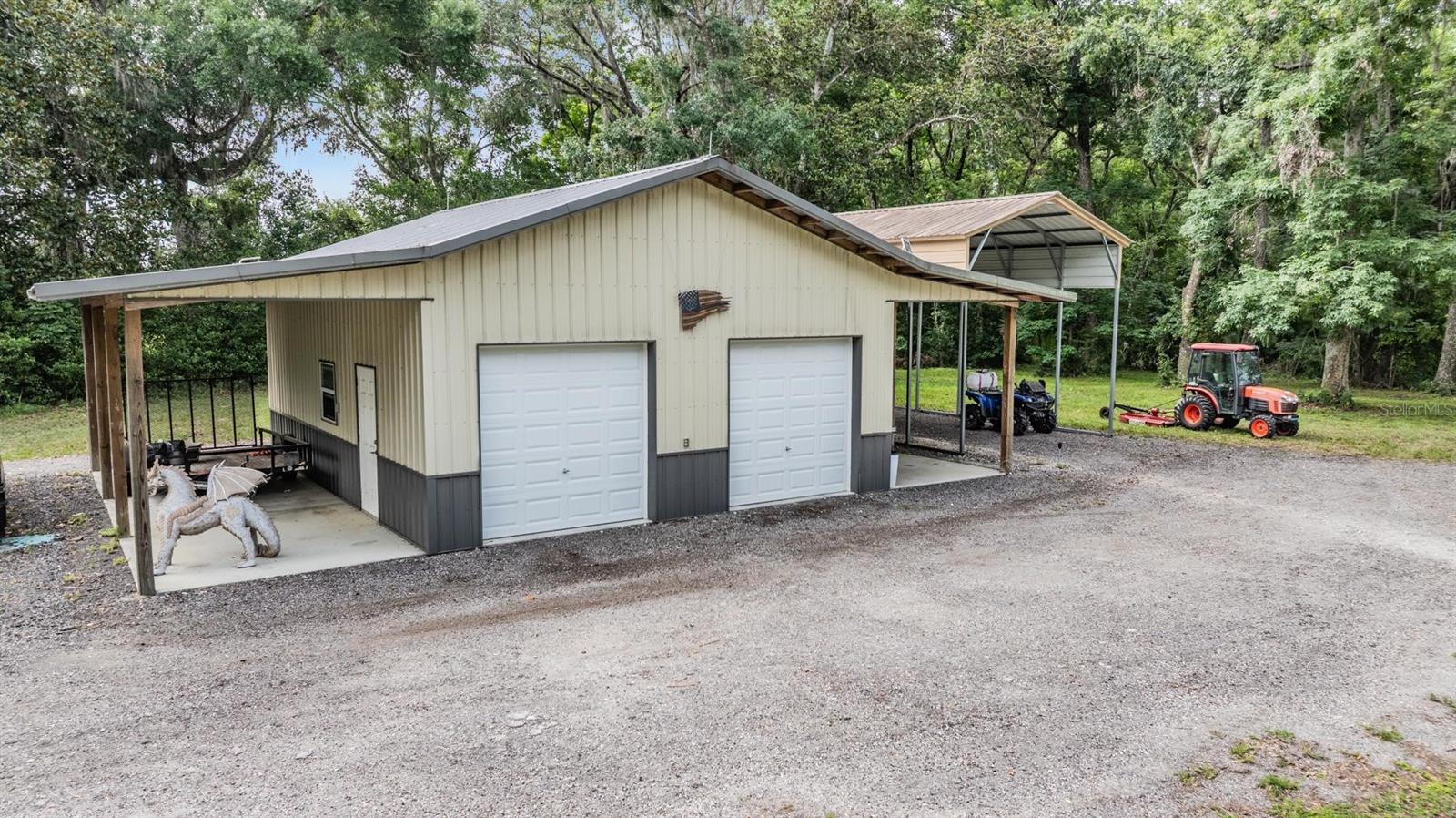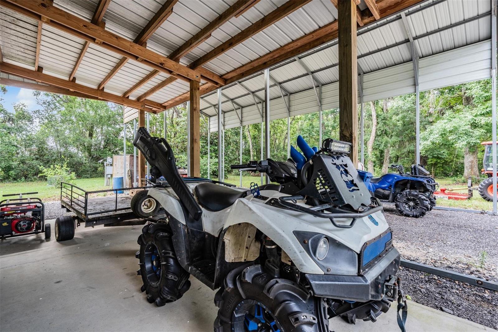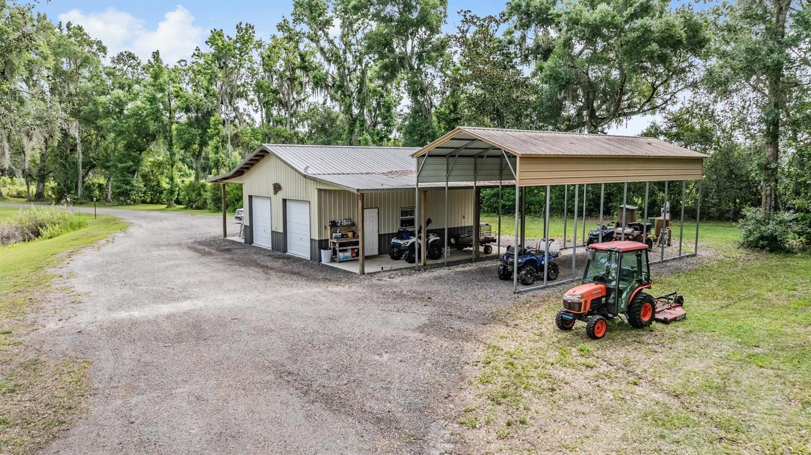 The roads have been thoroughly engineered with drainage and irrigation to ensure they remain high and dry. As the private gate opens you will see the 40 x30 ft barn with 6 inches of poured concrete and 2 metal roll up doors, plus a covered RV port with a 50 amp hookup.