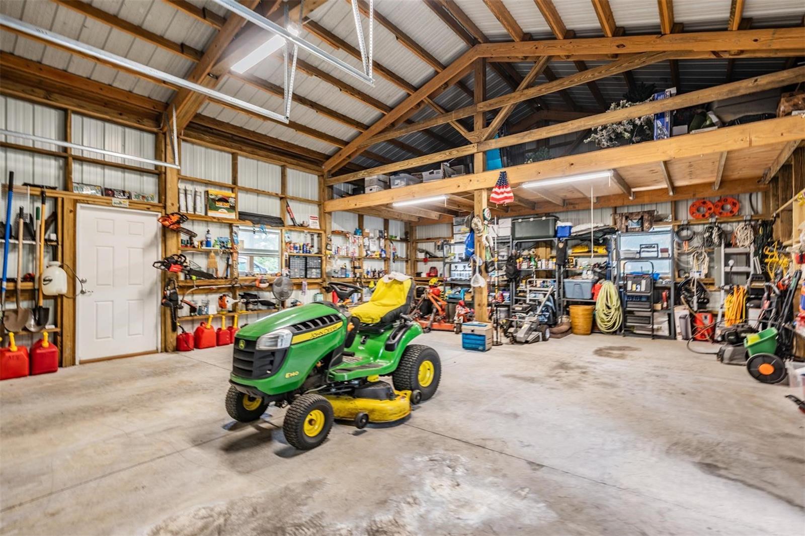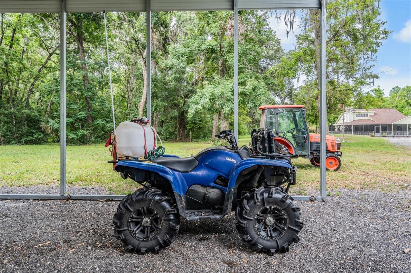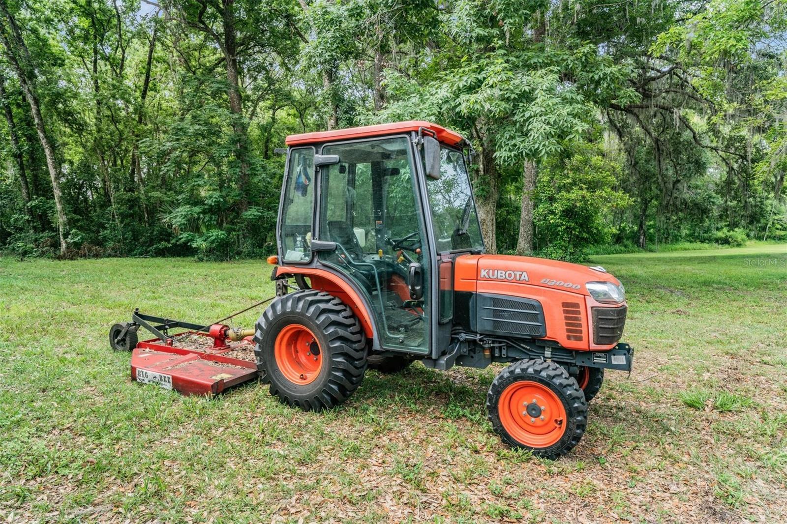 The Kubota tractor, A John Deere riding lawn mower, and 2 ATV's that come with the property!