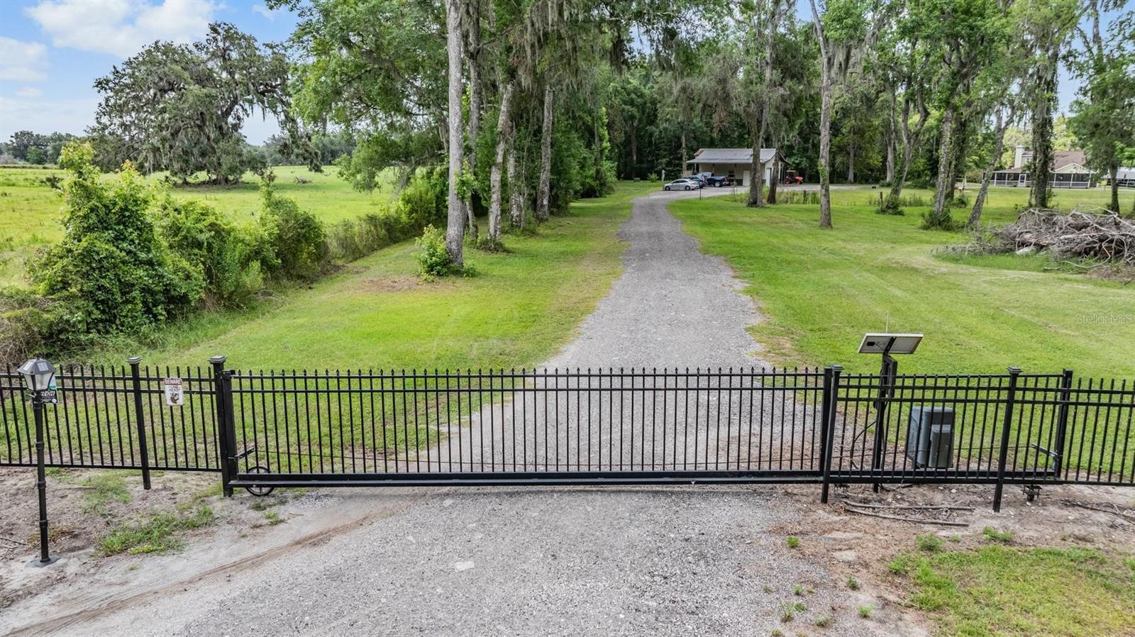 Set a half mile off the hard surface road with a private gate and security cameras, this home allows you to enjoy the ultimate peace and quiet so hard to find these days. You won't hear a single siren, car horn, or noisy neighbor. Just the birds calling, owls hooting, and leaves softly crunching under the feet of all the animals who peacefully roam this certified wildlife habitat.
