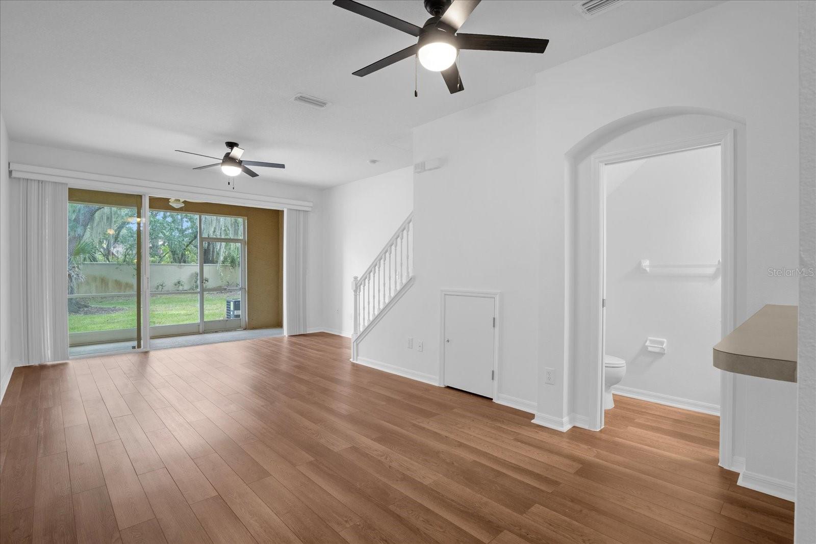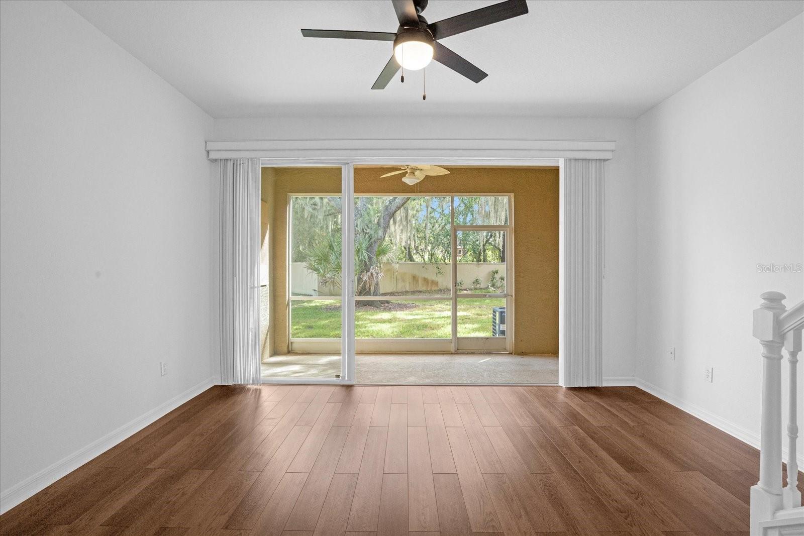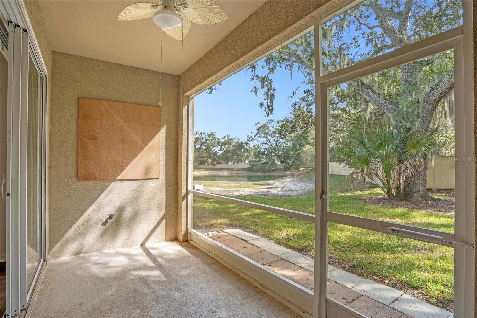 Ceiling fans throughout and the large windows plus triple sliders to the back screened-in lanai make the home bright and airy.
