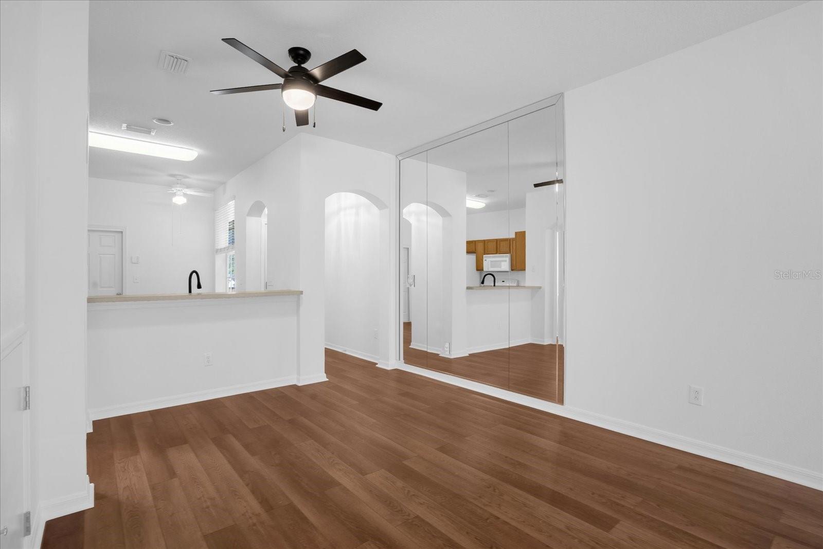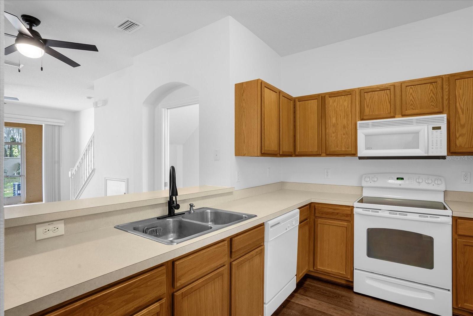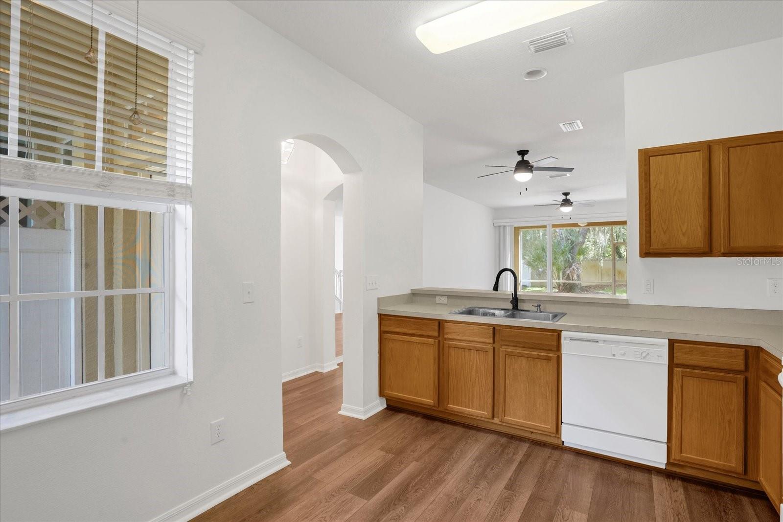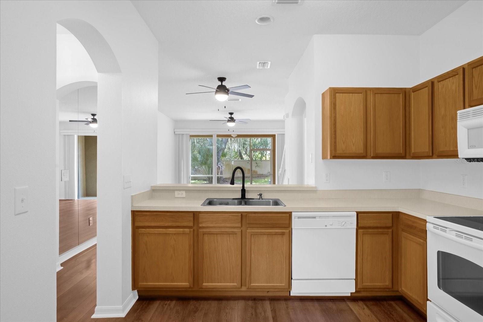 Ceiling fans throughout and the large windows plus triple sliders to the back screened-in lanai make the home bright and airy.