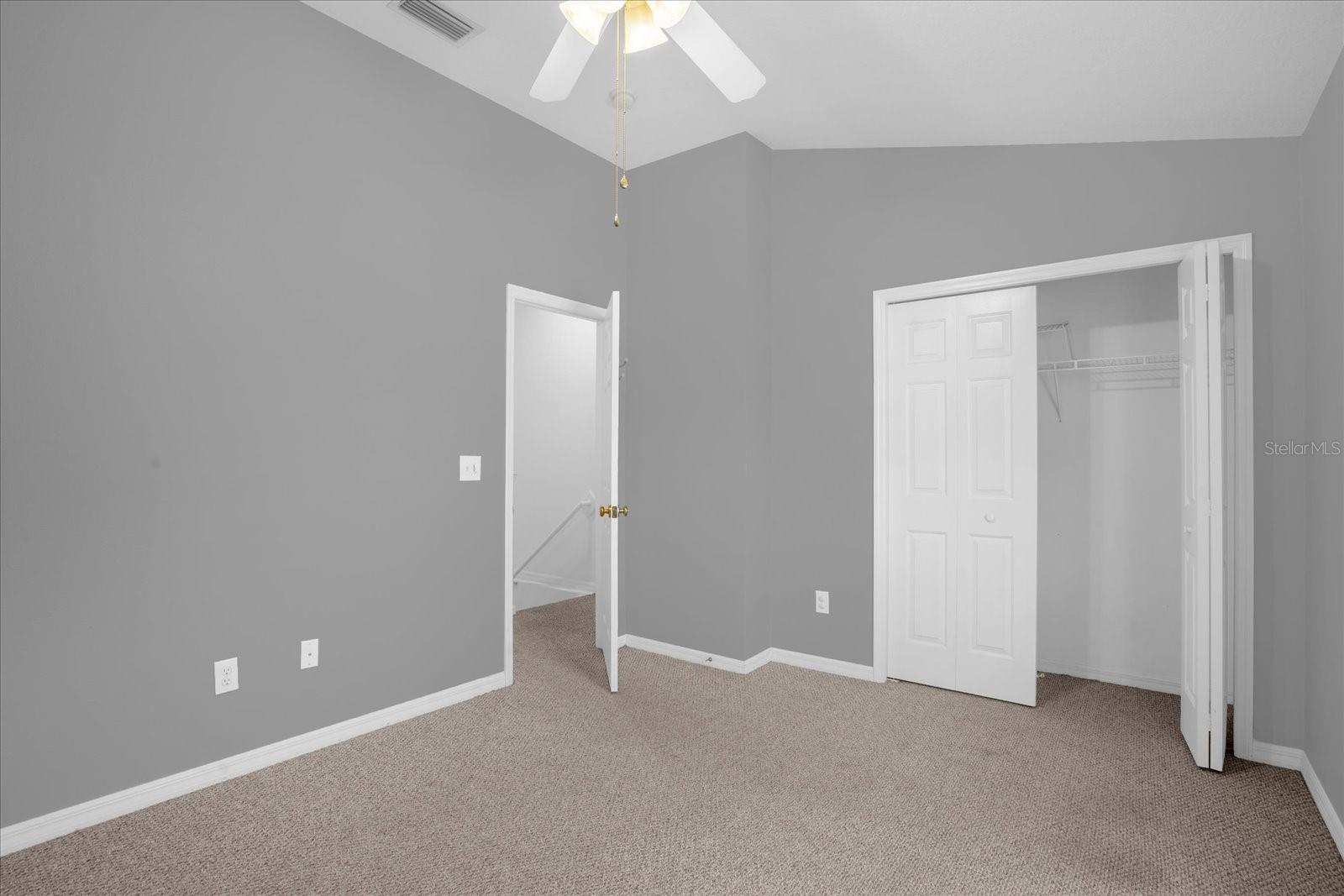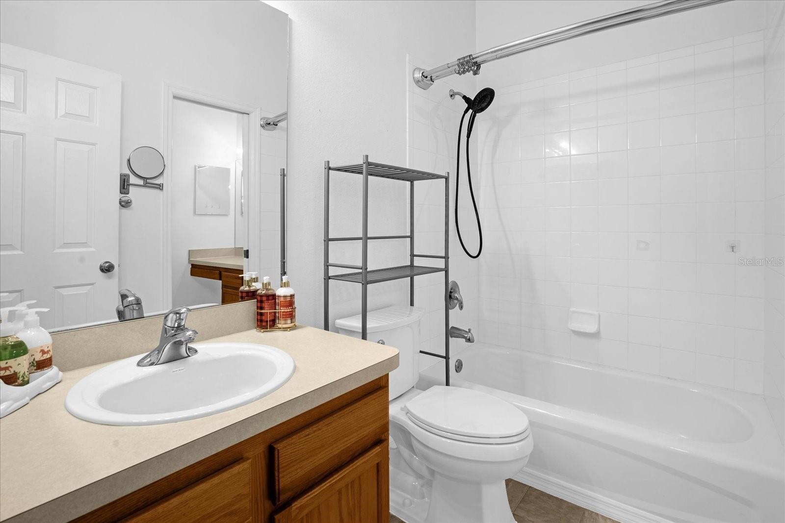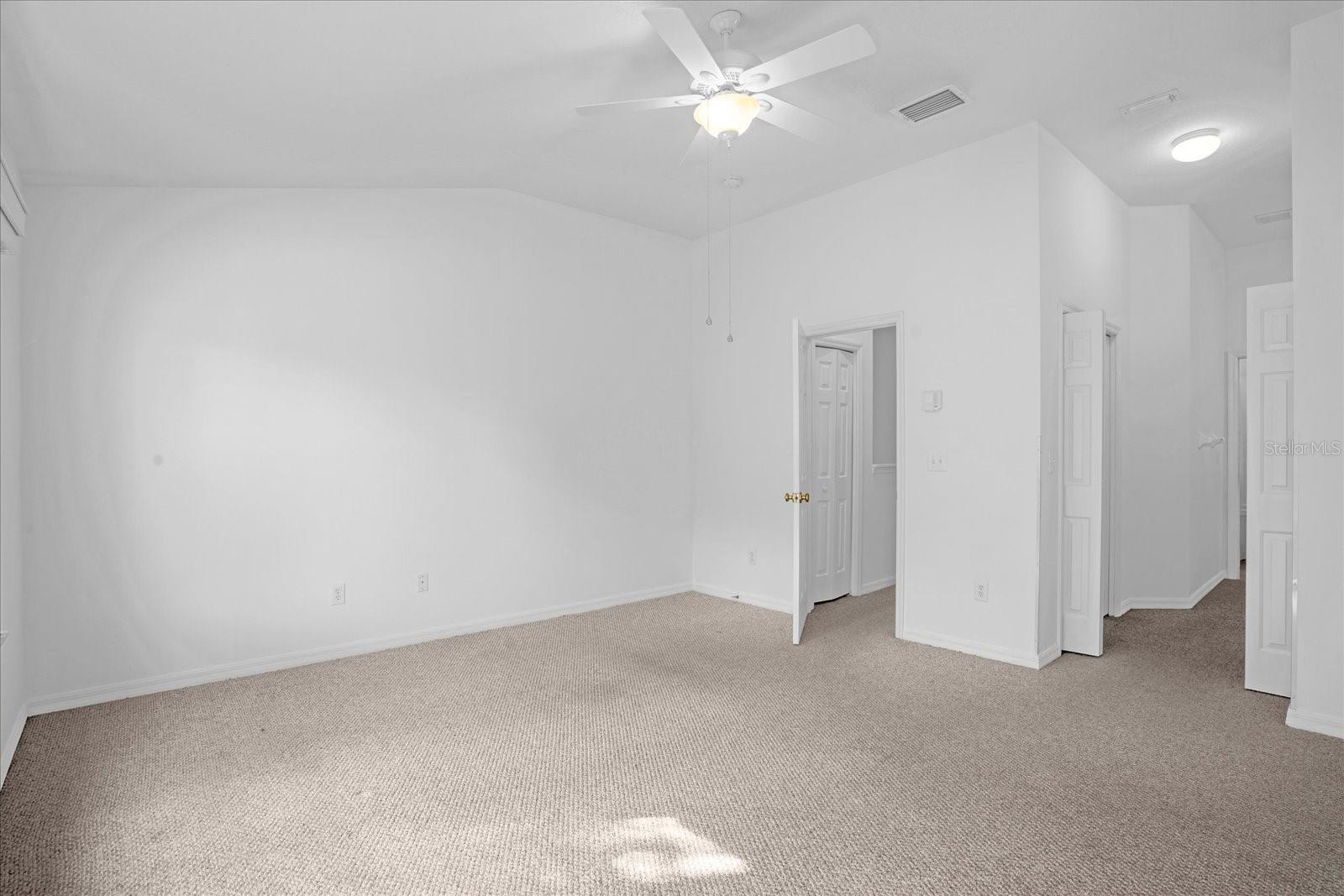 The master bedroom has its own private sink area just past the his and hers closets which then leads to the bathroom...also accessible from the hallway giving both privacy but accessibility for the 2nd bedroom.