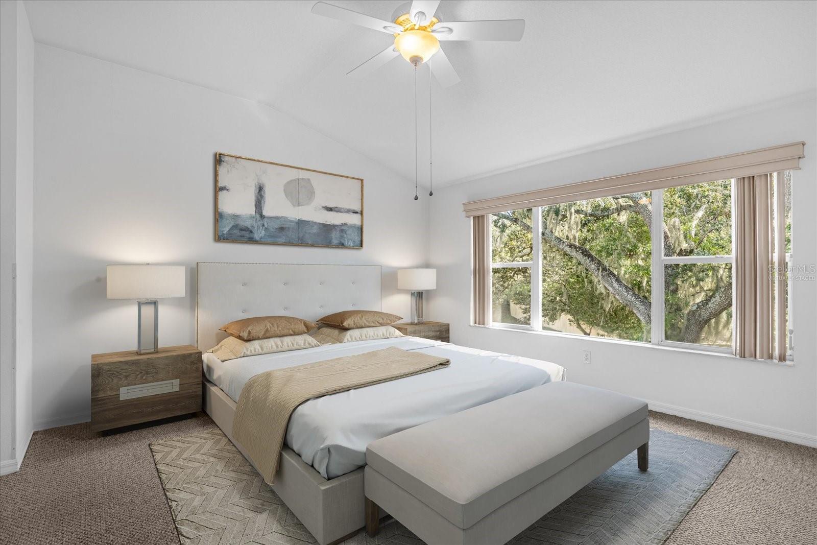 Upstairs, you'll find two spacious bedrooms, each offering comfortable retreats for rest and relaxation. The master bedroom features stunning pond views, creating a peaceful backdrop for your everyday routine.