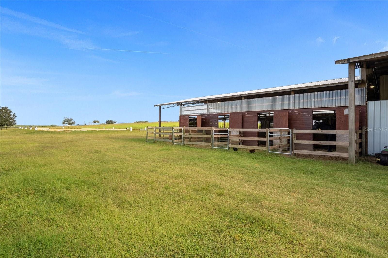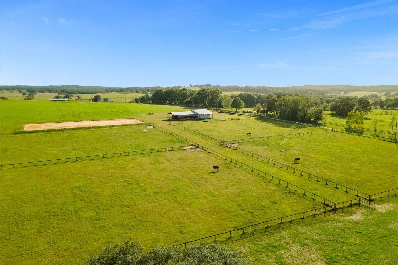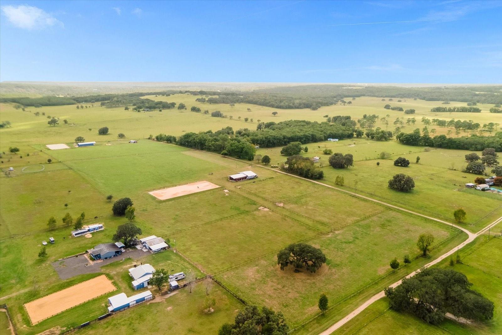 Welcome to this stunning 10 acre horse farm (additional 10 acre parcel also available), a true equestrian paradise! Nestled on rolling property with breathtaking views, this property offers the perfect blend of serenity and functionality. This turn-key equestrian facility is an ideal fit for the avid horse lover or a full-time horse trainer. With amazing views every way you look, a 200+' deep well and impact fees already paid, this property is a gem. Completely perimeter fenced with no climb and polymer top rail, it boasts its own improved Tifton hay field, giving you green belt privileges. Built in 2019, the property has a metal and wood barn with 8 12x12 stalls (each with its own "run out"), 2 12x12 wash areas, bathroom with washer/dryer hookups and set up for a shower, a tack room, feed room and ample area for dry storage. The 16'wide, concrete center aisle keeps it cool all year long. The second story hosts an oversized lounge and separate office/bedroom, with bathroom and kitchen facilities, as well as a cute porch for viewing and relaxing. The 100' x 220' sand/clay arena is irrigated and on a timer. Round it all out with 12x36' covered trailer parking, multiple RV hookups, this property has everything a horse person could ask for. Imagine waking up to the picturesque views of your horses grazing in the morning mist, or taking a peaceful ride through the expansive property. This is country living at its finest! Located in a gorgeous and convenient location in beautiful Brooksville, this horse farm offers the best of both worlds - a tranquil retreat and convenient access to the interstate. Equidistant to Florida Horse Park and the Florida State Fairgrounds (46 miles to each), plus just 59 miles to the World Equestrian Center AND 3.5 miles to Fannin Hill for local horse shows, your desire to train and show is easily fulfilled. Again - impact fees have been paid ready for you to unlock the potential of this land saving you time and money on your future home build. SELLER FINANCING IS AVAILABLE!!!! Additional 10 acre lot also available (see MLS T3553032). NOTE -The road is long and sandy and the price reflects the fact that this isn't on a paved road....priced WELL below appraised value and market value to accomodate the dirt road.