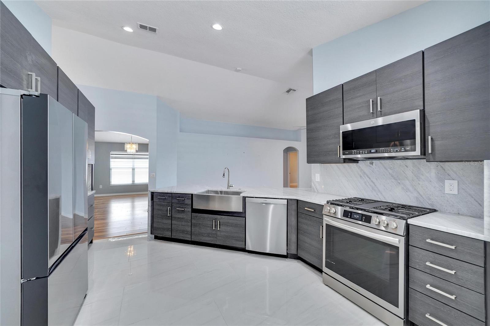 PRICE IMPROVEMENT!!!!! The gorgeous 4 bedroom, 3 bathroom home has it all. Not only does it boast an impeccable view on the water, but it's in an excellent community and a great location. With so many updates this home has a New roof 2023, New instant water heater 2023, New water softener 2023, HVAC was replaced in 2018, New paint 2023, treated and painted patio 2023, updated plumbing 2023 (changed all the shut off valves), replaced most of the lights and ceiling fans 2023. Did you see that stunning kitchen? Yes, that kitchen was fully remodeled in 2024 and includes new flooring, all new stainless steel appliances, quartz waterfall countertops, stainless farm sink and custom cabinets. What more could you want from a kitchen. The remodel of the kitchen really gives you that true open floor plan look and feel. This overlooks the beautiful Great room located in the center of the home with vaulted ceilings. The layout of this home is a three-way split. There is one bedroom and front with a full bathroom and two bedrooms that have a Jack & Jill bathroom and the Owners Retreat is on the opposite side of the home. The Owners Retreat includes sliding doors that lead to the massive covered screened lanai. There is also a huge walk-in closet, en-suite bath with garden tub, separate shower, double sinks and linen closet. The oversized covered screened lanai is perfect for entertaining with family or friends and gives you so many options to fill the open space. This community offers lots of amenities for everyone to enjoy. The location is great because it is conveniently close to restaurants and shopping. Approximately 30 minutes or less from Tampa International Airport. Looking to enjoy that peaceful Florida living, then schedule your private showing today. You do not want to miss out on this amazing home.