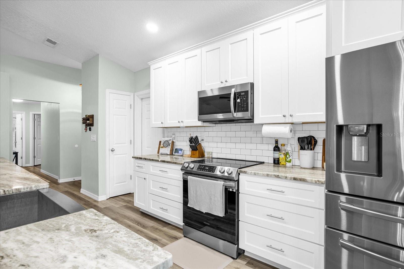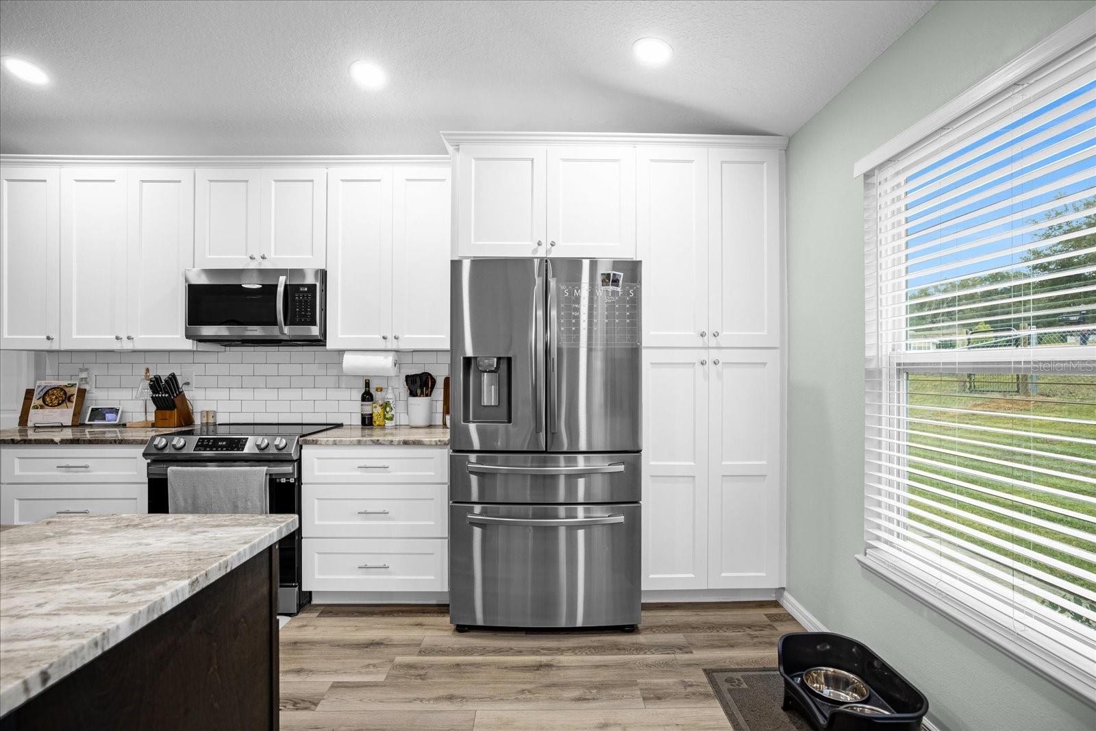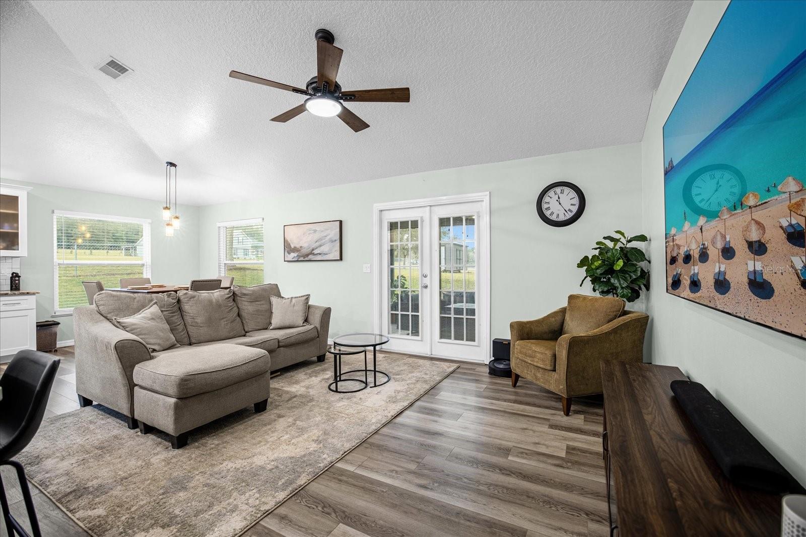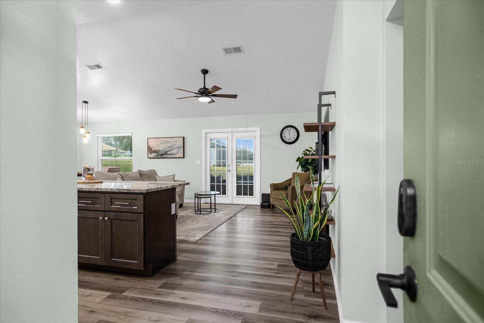 Welcome to your charming oasis! This beautifully updated 3 bedroom, 2 bath home is nestled on a spacious 1.12-acre lot (2 parcels), offering a perfect blend of comfort and tranquility. As soon as you walk in the door you will be WOWED by the vastness of the kitchen and great room area. So open and inviting with GORGEOUS granite countertops and a MASSIVE island. With the soaring ceilings, this main living area is where you will spend most of your time enjoying so much room but also somehow feeling cozy at the same time. The open-concept layout creates a warm and inviting atmosphere, with a modern kitchen featuring stainless steel appliances, granite countertops, and ample cabinet space. The living room boasts natural light, perfect for relaxing or entertaining guests.