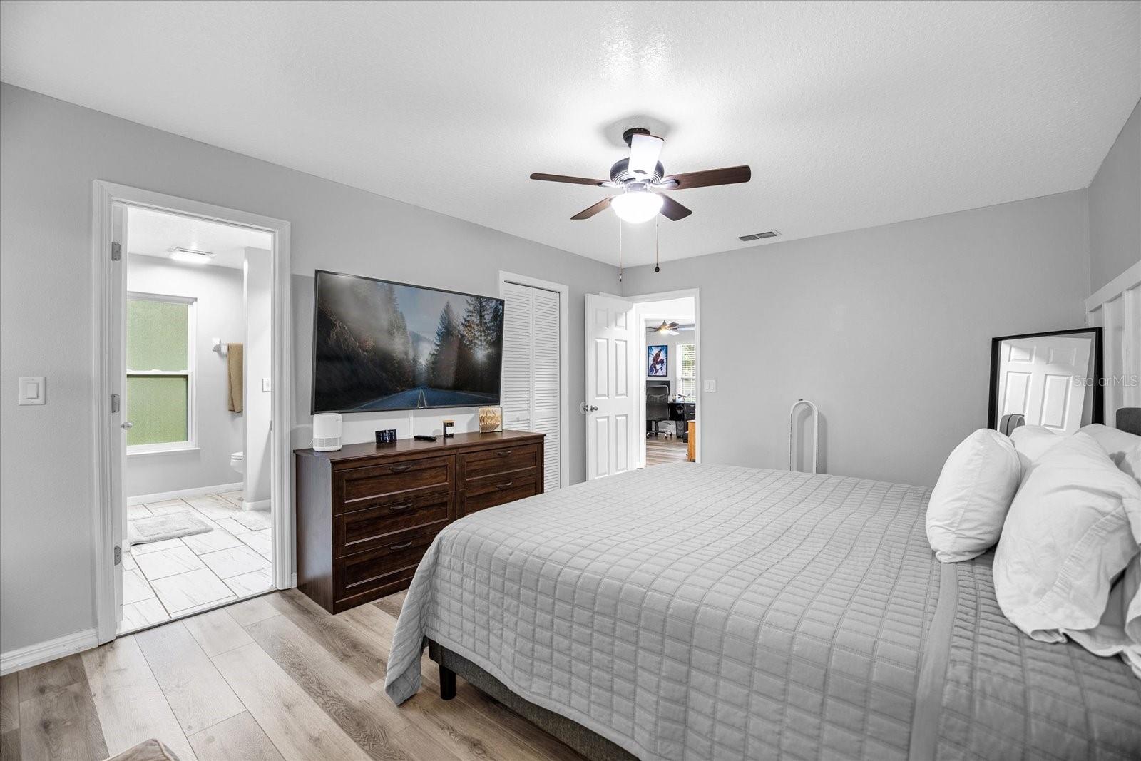 And as you retreat for the evening or maybe an afternoon nap, the huge master bedroom invites you to relax and seek solace in its warmth and comfort. With touches like the beadboard wall bringing so much charm, to the upgraded shades to shut the world away, you will find yourself equally relaxed in this room as you are in the main living area. This generous master suite provides a peaceful retreat, complete with a luxurious en-suite bath and walk-in closet.