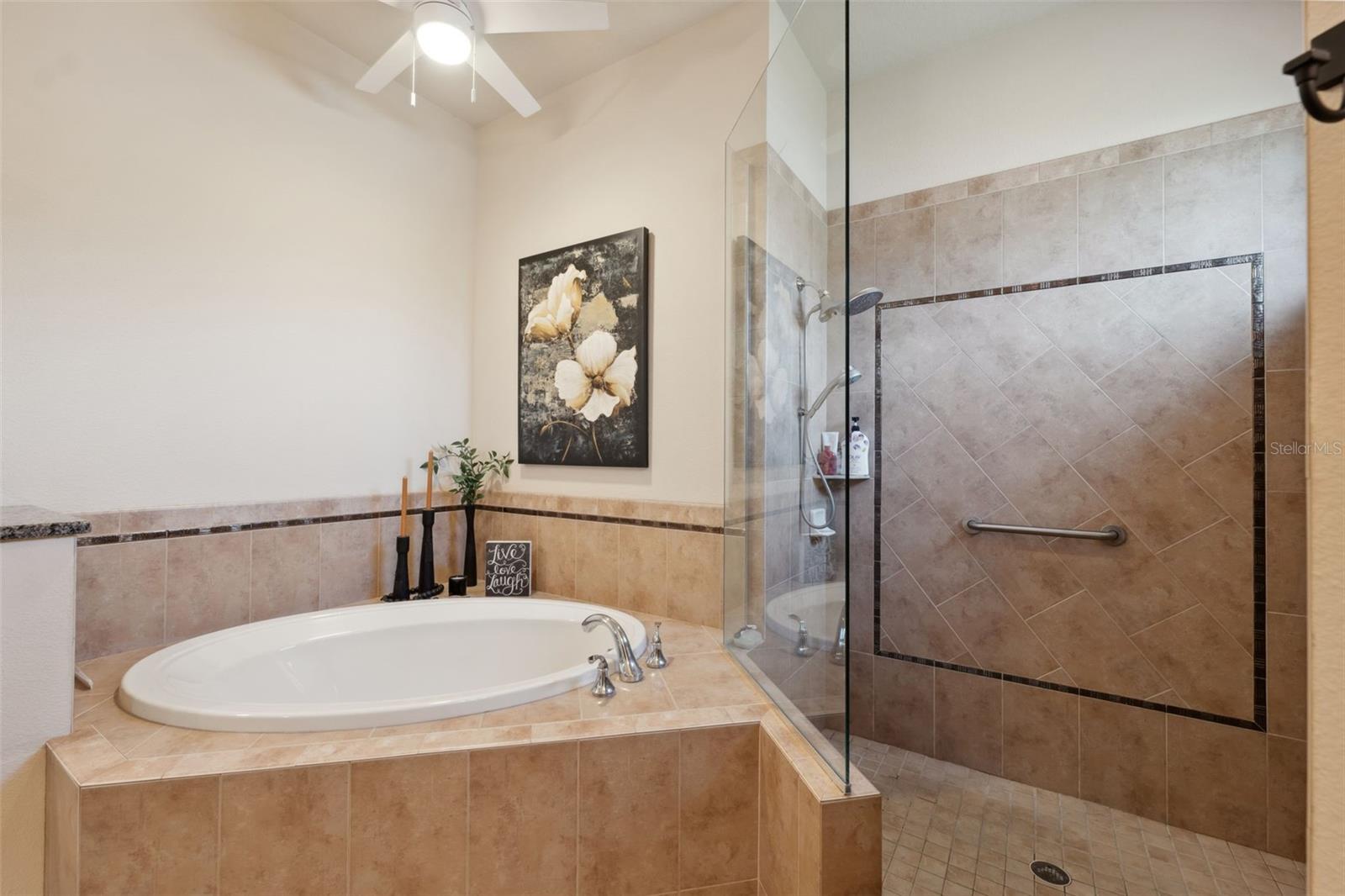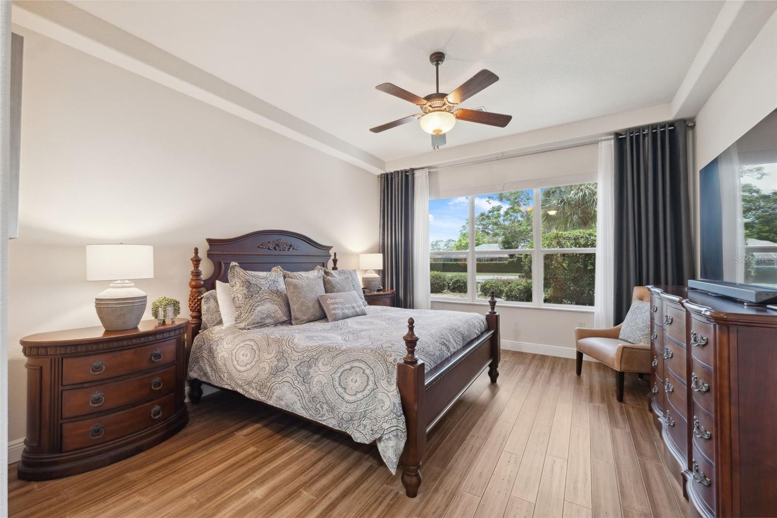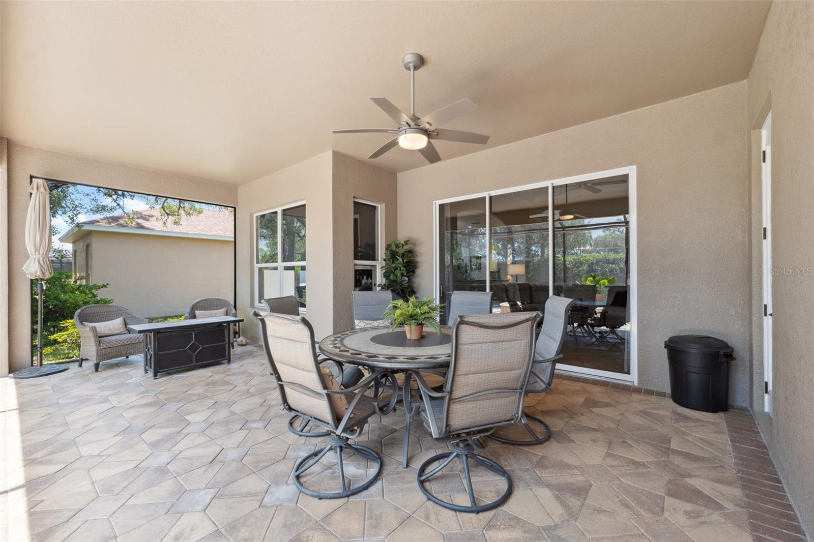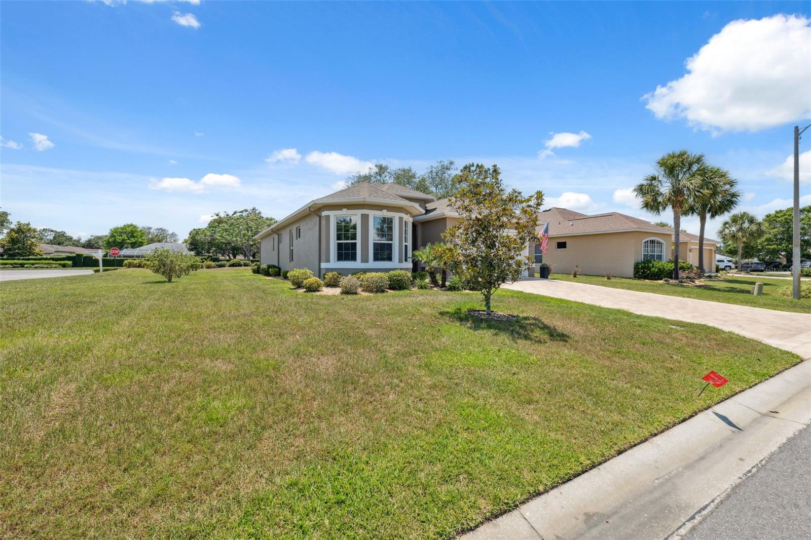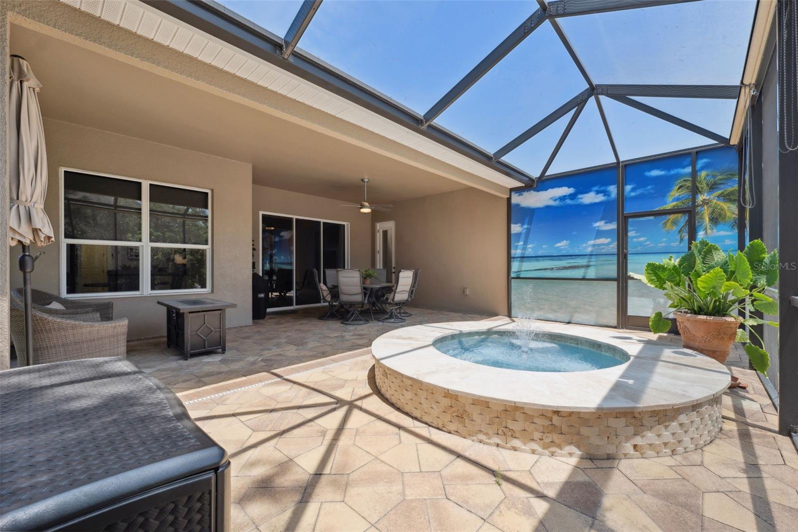 opened living area, featuring 12 ft ceilings with Crown Molding. Dining room has a beautiful Chandelier. Kitchen features GE "Cafe" Appliances, Refrigerator, Range, Dishwasher, Exhaust Fan. Great Room includes a custom built in TV Cabinet. Lanai has been re-screened, built in heated spa has been refaced with travertine pavers, driveway was extended 16 inches on both sides. Custom window treatments, power shades, & led lights. Golf club with restaurant and social facilities. The list goes on and on! THIS IS A MUST SEE!