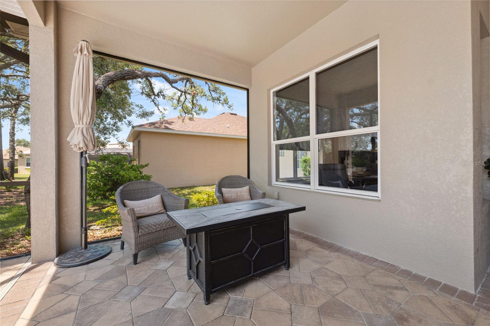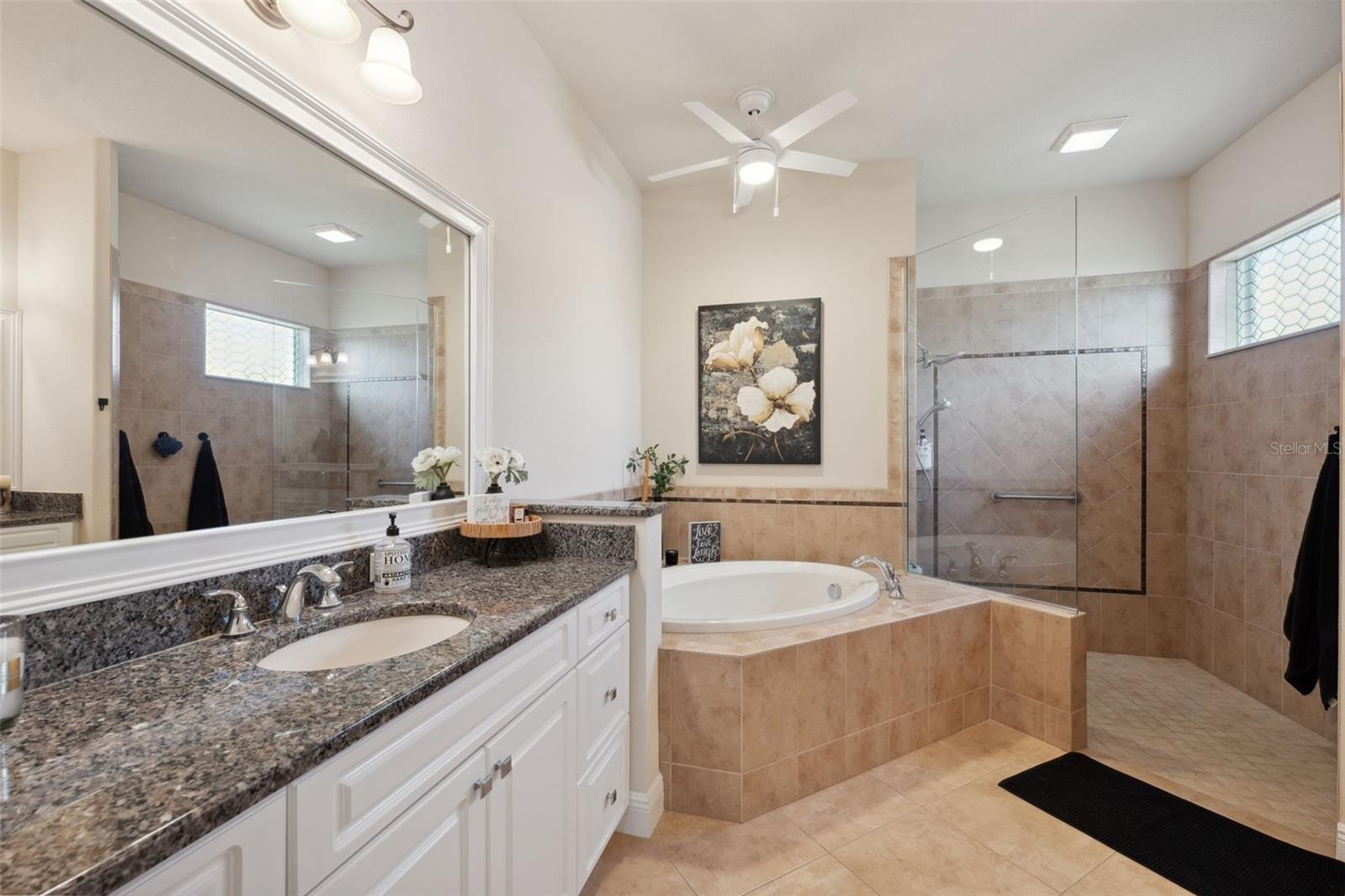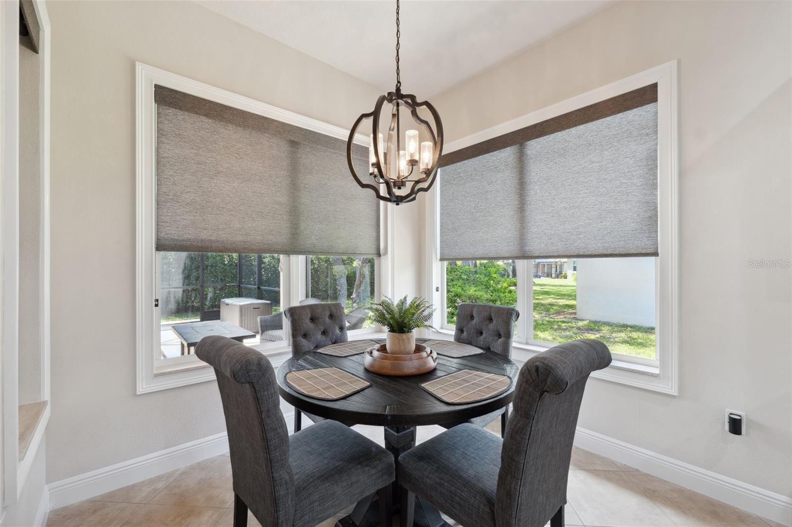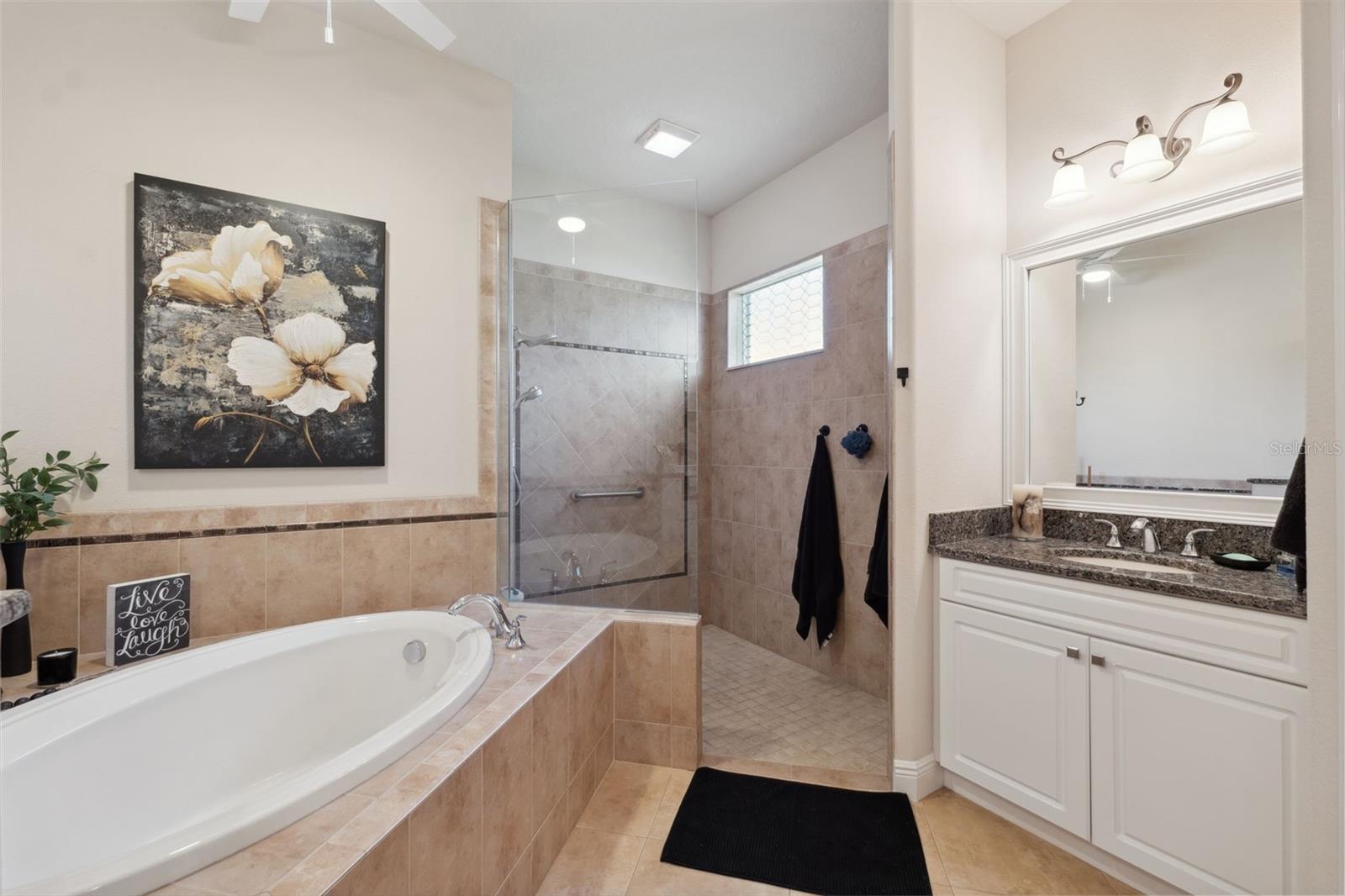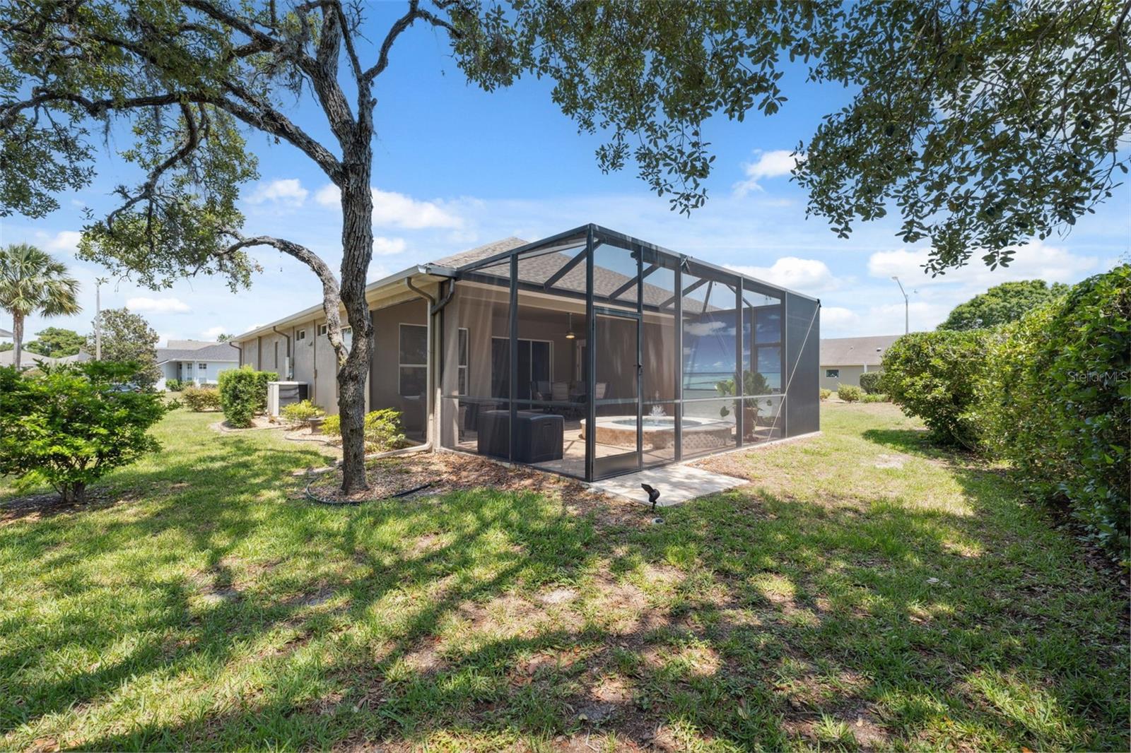 opened living area, featuring 12 ft ceilings with Crown Molding. Dining room has a beautiful Chandelier. Kitchen features GE "Cafe" Appliances, Refrigerator, Range, Dishwasher, Exhaust Fan. Great Room includes a custom built in TV Cabinet. Lanai has been re-screened, built in heated spa has been refaced with travertine pavers, driveway was extended 16 inches on both sides. Custom window treatments, power shades, & led lights. Golf club with restaurant and social facilities. The list goes on and on! THIS IS A MUST SEE!