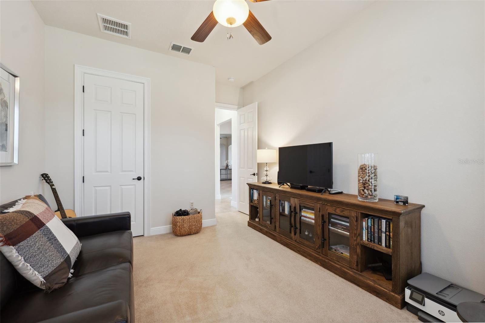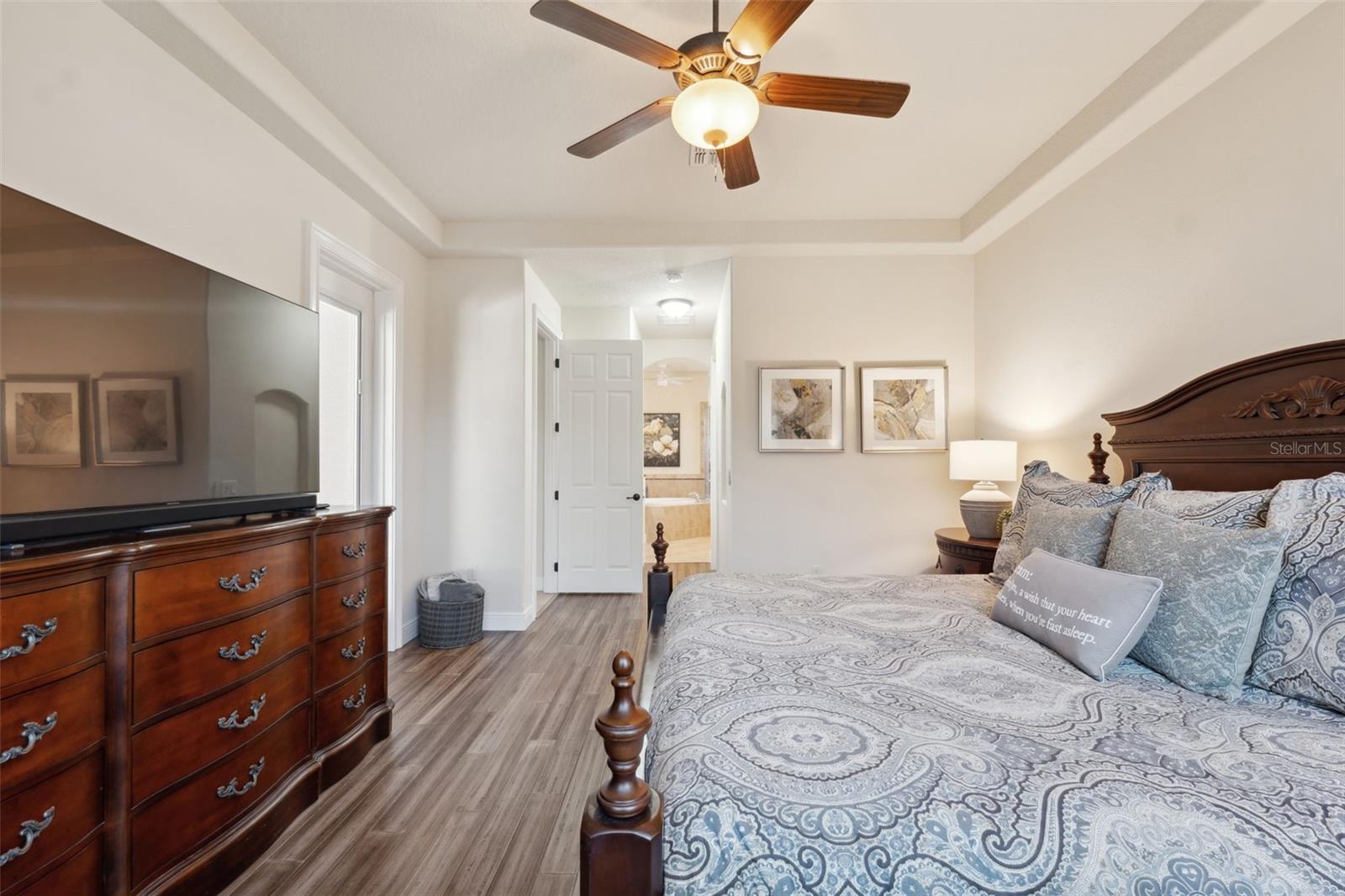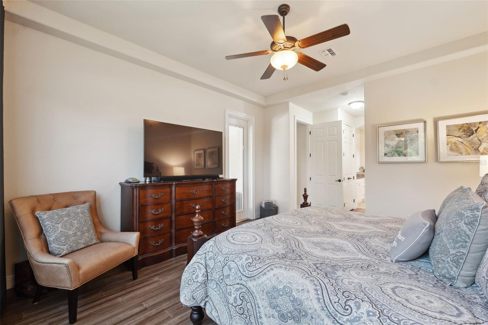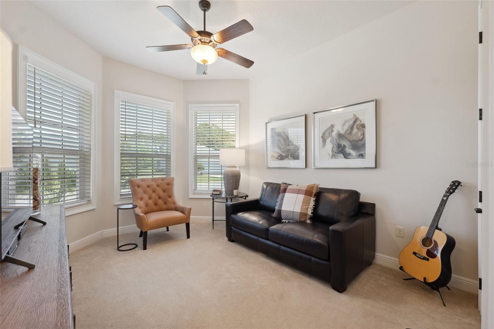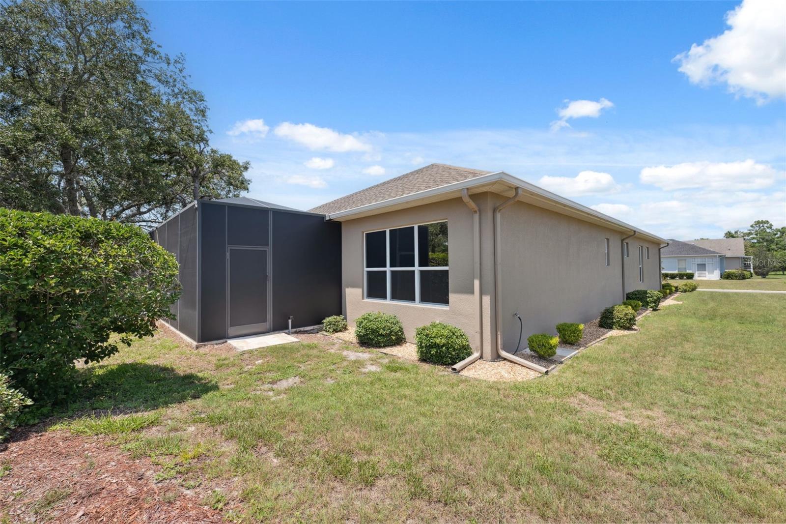 opened living area, featuring 12 ft ceilings with Crown Molding. Dining room has a beautiful Chandelier. Kitchen features GE "Cafe" Appliances, Refrigerator, Range, Dishwasher, Exhaust Fan. Great Room includes a custom built in TV Cabinet. Lanai has been re-screened, built in heated spa has been refaced with travertine pavers, driveway was extended 16 inches on both sides. Custom window treatments, power shades, & led lights. Golf club with restaurant and social facilities. The list goes on and on! THIS IS A MUST SEE!